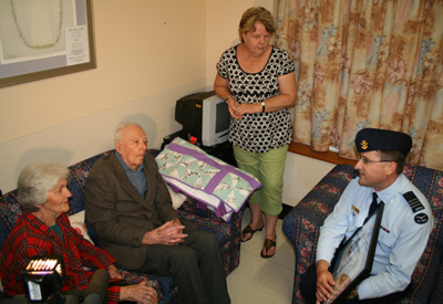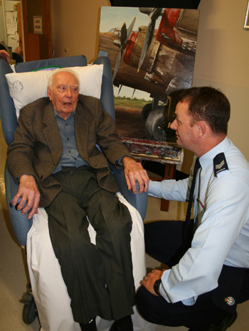 Allan is presented with the former and current 462 Sqn Crest by Commanding Officer of 462 Sqn Wing Commander Darren May |