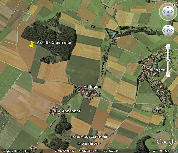 The images below shows where MZ-467 crashed in the early hours of the 17th April 1945. Many thanks to Rolf Ebnet for his assistance in pin pointing the crash site New photos added, last updated 07/03/2015 |