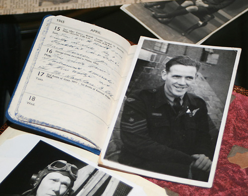 Cecil Foster's diary frozen in time, last entry 16 April 1945 Photo: Greg Weir |