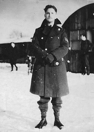 Three MZ-467 Crew - Christmas 1944 at Driffield Top centre to right - Joe, Ronald, Cecil, ???