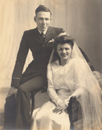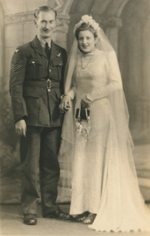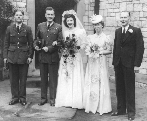 Edward Windus at his sister's wedding six days before he was killed L/R - Edward Windus, John Bradley, Hilda Windus 11th April 1945 - Photo Windus Family