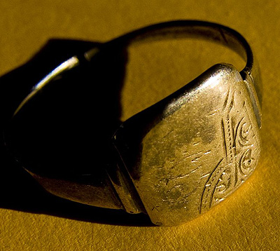 Photo of the ring that Robert McGarvie was wearing at the time of the crash, this ring was used by the American investigators to give a postive ID on Robert's body - Photo Dave McGarvie |