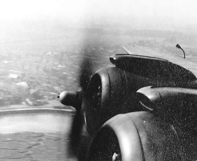 MZ-467 In-Flight photo during air tests - Photo: Max Langworthy This very rare photo was taken by 462 Sqn pilot Max Langworthy just after take off on the way to carry out air to sea firing tests - 26th March 1945 |